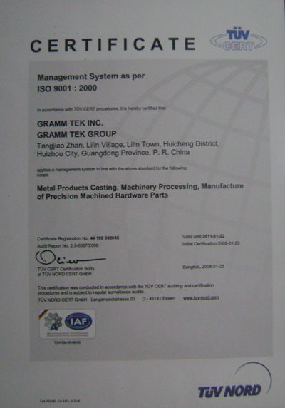 ISO/TS16949認(rèn)證,為更好地為車廠提供汽車配件製造服務(wù),本公司于2008年順利通過TUV及BSI認(rèn)證TS技術(shù)規(guī)範(fàn),使得品質(zhì)管制升級為技術(shù)規(guī)範(fàn)來開展。